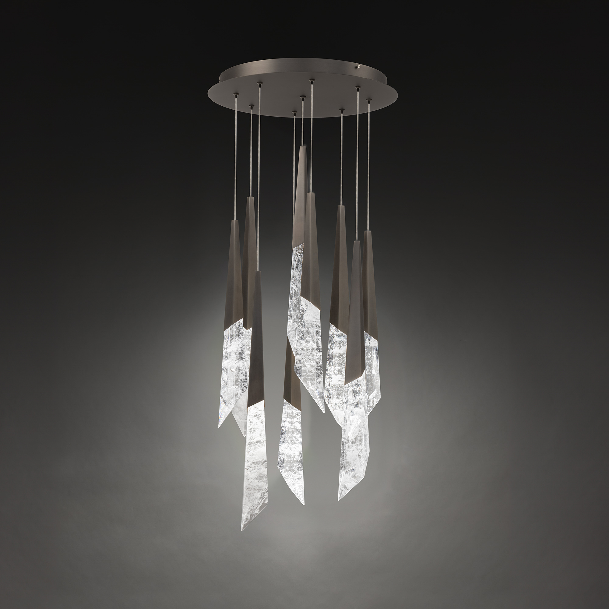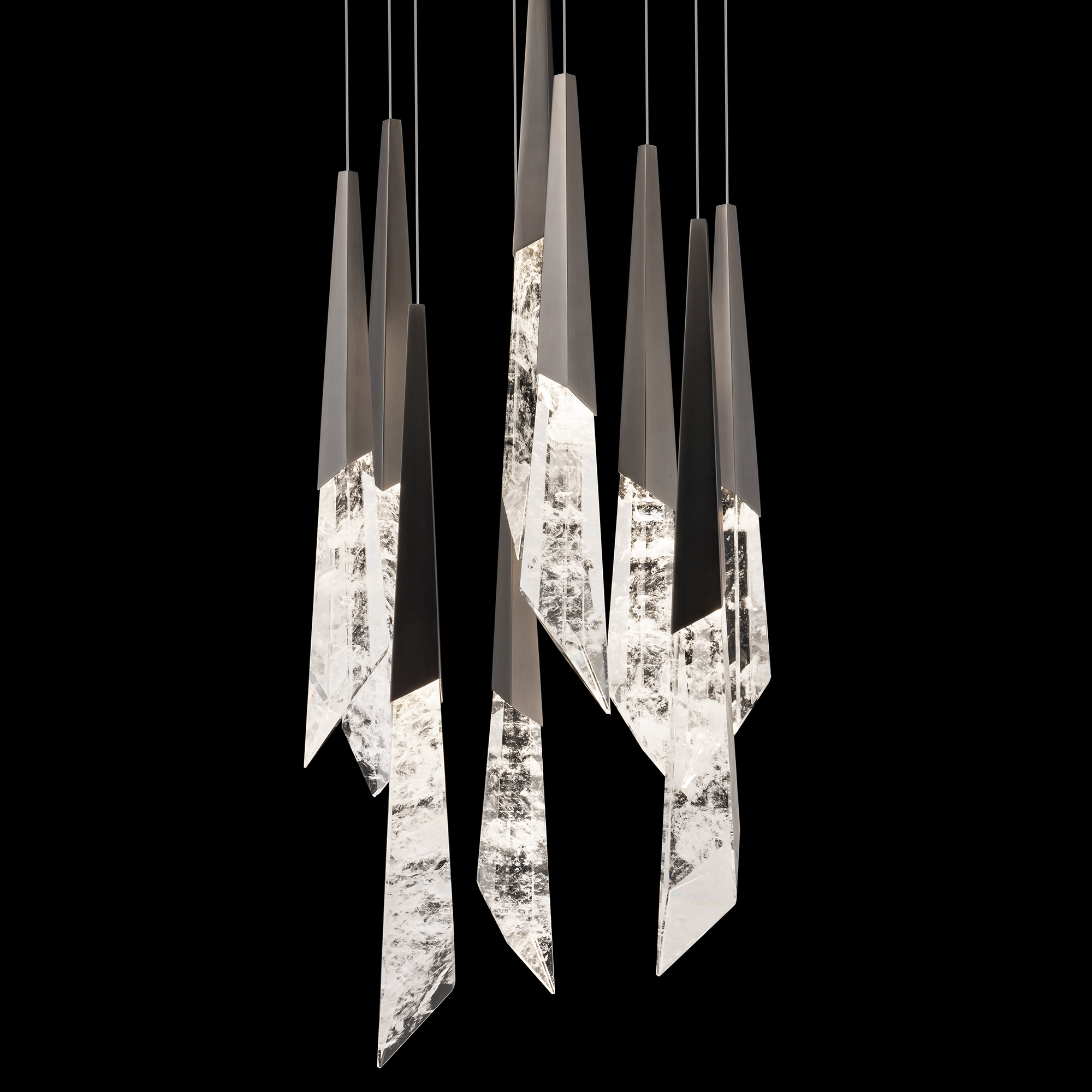 SCHONBEK | Solitude 9 Light Pendant in Optic HazeQuartz and Antique Nickel Finish | LED