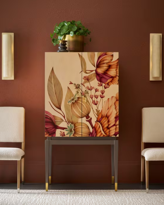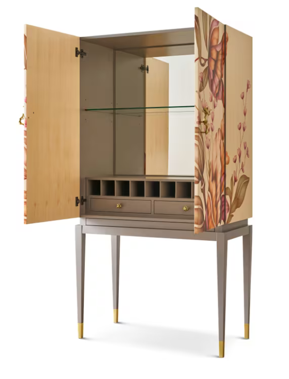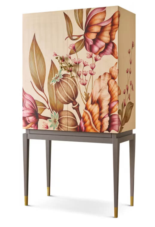 THEODORE ALEXANDER | Wooden Bouquet Bar Cabinet with Brass Base
